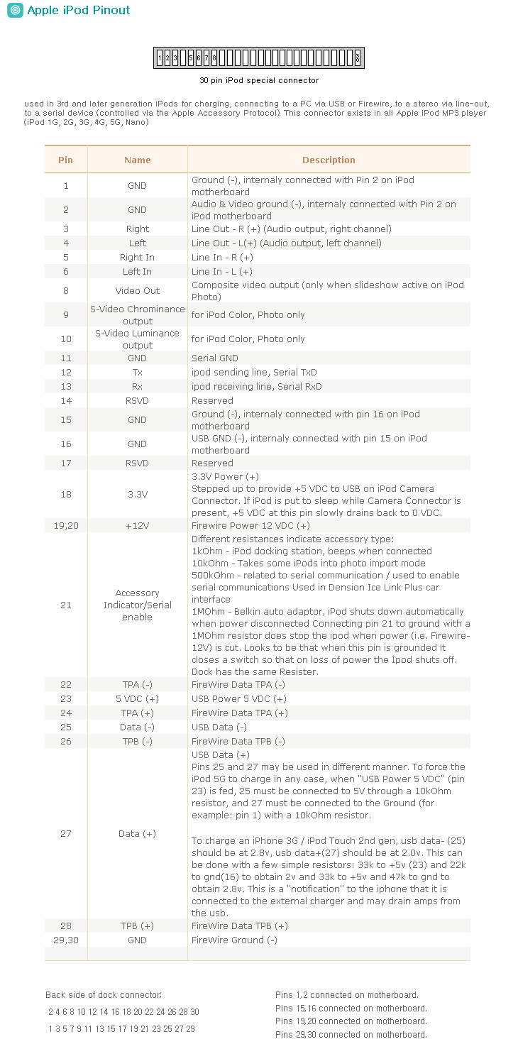 Apple 30Pin Pin assign <